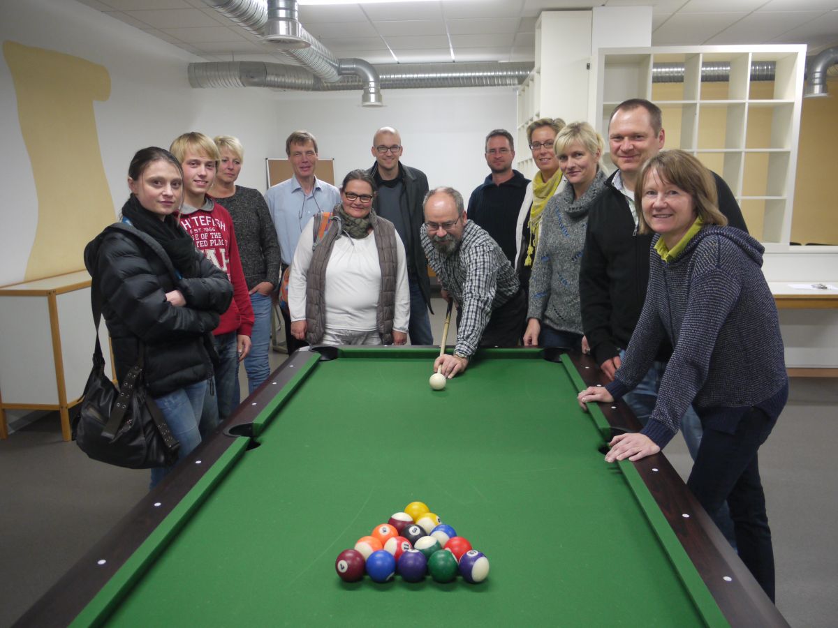 Doch der Förderverein möchte nicht nur die Qualität des Unterrichts unterstützen. Für eine Ganztagsschule ist es ebenso wichtig, dass die Angebote in den Pausen vielseitig und attraktiv sind. "Die Schüler sollen sich ja gut erholen können, um anschließend wieder konzentriert am Unterricht teilzunehmen" sagte der Vorsitzende des Fördervereins, Andreas Heimann, anlässlich der Übergabe eines neuen Billiardtischs und eines Tischfußballkickers, die im Ganztagsbereich der Schule aufgestellt wurden.