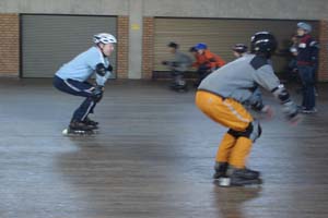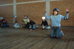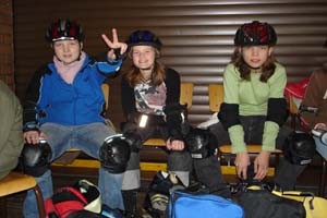 Immer wieder verwies Frau Haase nicht nur auf die Straßenverkehrsordnung und die Notwendigkeit der Skater- oder Fahrradhelme, sondern auch auf die weitere Schutzkleidung für Inline-Skater und den Einsatz von sichtbaren Reflektoren. „Bei den schweren oder gar tödlichen Skaterunfälle, auch in unserem Landkreis, tragen die Opfer leider häufig keinen Helm sowie notwendige Sicht- und Schutzvorkehrungen.“, so die Polizeibeamtin.Nach dem Theorieblock erhielten die Schülerinnen und Schüler des Jahrgangs innerhalb eines aufgebauten Parcours in der Batenhorster Hubertushalle ein Training zur Sicherheit im Umgang mit den Skates. „Das ist zwar wirklich anstrengend, aber ich habe viel gelernt!“, fasste ein Schüler den Tag zusammen. Den praktischen Übungen waren die exakte Helmeinstellung sowie der korrekte Sitz der Protektoren voran gestellt.