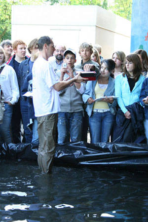 Doch das war noch nicht das Ende. Am Beginn des Schulfestes sagte Herr Wiertz: ,,Wenn die Modellbau-AG, die extra Spenden gesammelt hat, mehr als 100 Euro zusammen hat, dann tauch ich in dem Wasserbecken auf dem Schulhof ab!“ Somit hieß es dann am Ende des Tages: „Herr Wiertz ging baden!“