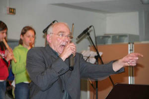 Mit Beginn des zweiten Blockes spielte unsere Instrumentalgruppe unter der Leitung von Herrn Birkenhake. Herr Birkenhake ging wie immer voll mit und heizte die Stimmung in der Aula so richtig ein.