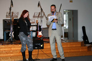 Nach einer kurzen Begrüßung durch unseren Moderator Herrn Wiertz, der durch das Showprogramm führte, begrüßte unser Schuldirektor Herr Flaschel die anwesenden Gäste. Herr Greufe von der Stadt Rheda-Wiedenbrück hielt eine kurze Eröffnungsrede, bevor Herr Flaschel mit seiner 20-minütigen Show "Zauberhafte Chemie" das Publikum begeisterte. Er zeigte uns, wie man aus Kupfer Silbermünzen und Goldmünzen herstellen kann, dass Rosen, die man in flüssigen Stickstoff hält, in tausend Teile zerspringen wenn sie zu Boden fallen, dass die Herstellung von Bier aus dem Emswasser kinderleicht ist und Gummibärchen in erhitztem Zucker zu sprühen anfangen (auch wenn dieser Versuch nicht so ganz geklappt hat).
