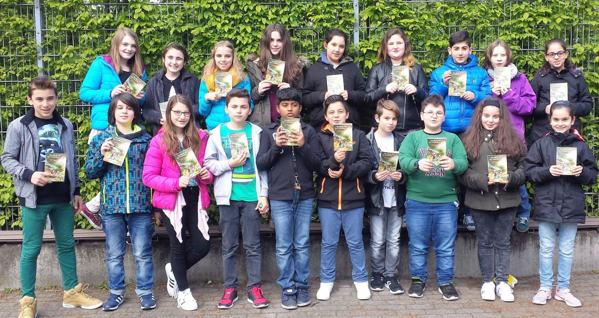 Am Mittwoch, den 04.05.2016 besuchte die Klasse 5a der Osterrath Realschule die Buchhandlung Güth in Rheda-Wiedenbrück. Sie war anlässlich der Aktion „Ich schenke dir eine Geschichte“ der Stiftung Lesen eingeladen worden, sich eine Buchhandlung anzusehen. Nachdem der Termin schnell mit der Besitzerin Martina Güth abgemacht war, machten sich die Fünftklässler mit ihrer Lehrerin Frau Weyrowitz aufgeregt auf den Weg. Viele Kinder kannten sowohl die Buchhandlung im Klingelbrink als auch die Aktion der Stiftung Le-sen aus der Grundschule. Trotzdem schafften die Besitzerin und ihre Mitarbeiterin es, die 22 Schülerinnen und Schüler sogleich zu fesseln. Ein großer Kreis wurde gebildet und das Buch „Im Bann des Tornados“, das die Buchhandlung jedem Kind schenken wollte, vorgestellt. Die Kinder konnten es kaum erwarten mehr über die Hauptfigur Noah zu erfahren, der mit seinen Eltern eine Urlaubsreise nach Amerika macht, doch statt langweiliger Sommerferien an einem einsamen See warten viele Abenteuer auf ihn, das ließ schon das Bild auf dem Buch erkennen. Bevor jedoch zu viel verraten wurde, wurde zunächst die gesamte Buchhandlung mit ihren verschiedenen Sparten und Angeboten in Augenschein genommen. Den Kindern fielen Kochbücher genauso auf wie spannende Thrillertitel oder auch das große Angebot an Postkarten und kleinen Lernspielen. Geduldig beantwortete die Mitarbeiterin die Fragen der Schüler, gab kleine Rätsel auf und ließ auch verschiedene Bücher zur Ansicht durch den Kreis gehen. Am Ende hatten alle noch Zeit selbstständig zu schmökern und zu schlendern, bevor dann jeder seinen Gutschein gegen das Buch „Im Bann des Tornados“ von Anette Langen eintauschen und seine Lektüre stolz mit nach Hause nehmen durfte. Diese wird die Klasse in den nächsten Wochen im Unterricht begleiten und dann werden sie hoffentlich auch das Geheimnis um den Tornado gelüftet haben! Die Klasse 5a und Frau Weyrowitz bedanken sich noch einmal ganz herzlich bei der Buchhandlung Güth und ihrem Team für einen tollen Vormittag und spannendes Lesefutter!