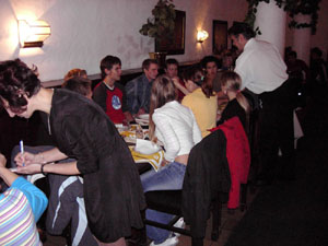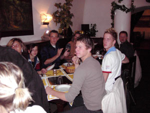 Als wir um sieben Uhr morgens alles im Bus verstaut hatten, fuhren wir los. Nach elf Stunden Busfahrt erreichten wir unser "Hotel". Die Begeisterung hielt sich bei den meisten in Grenzen. Nachdem wir unsere Zimmer bezogen hatten, gingen wir im historischen Keller (Restaurant) essen.