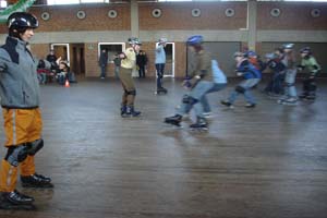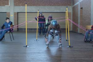 Immer wieder verwies Frau Haase nicht nur auf die Straßenverkehrsordnung und die Notwendigkeit der Skater- oder Fahrradhelme, sondern auch auf die weitere Schutzkleidung für Inline-Skater und den Einsatz von sichtbaren Reflektoren. „Bei den schweren oder gar tödlichen Skaterunfälle, auch in unserem Landkreis, tragen die Opfer leider häufig keinen Helm sowie notwendige Sicht- und Schutzvorkehrungen.“, so die Polizeibeamtin.Nach dem Theorieblock erhielten die Schülerinnen und Schüler des Jahrgangs innerhalb eines aufgebauten Parcours in der Batenhorster Hubertushalle ein Training zur Sicherheit im Umgang mit den Skates. „Das ist zwar wirklich anstrengend, aber ich habe viel gelernt!“, fasste ein Schüler den Tag zusammen. Den praktischen Übungen waren die exakte Helmeinstellung sowie der korrekte Sitz der Protektoren voran gestellt.