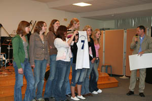 Bei dem 2. Ehrungsblock wurden mit dem FOR-Ehrenpreis die Tutoren der Hausaufgabenbetreuung (stellvertretend Christoph B. + und Marietta K.), Angela Ö. für ihr jahrelanges Engagement in der Theater- AG und das Team "Who is Who" (Nicole B. + Pia D.), die die ganzen Bilder für die "Who is Who-Vitrine" erstellt haben geehrt. Ebenfalls wurde ein Vater unserer Schüler, Herr Kamin, der die Vitrinen zusammengebaut und das ganze Material zur Verfügung gestellt hat sowie unseren Technikunterricht schon lange mit Material unterstützt, geehrt. Er durfte sich über einen riesigen Präsentkorb freuen.