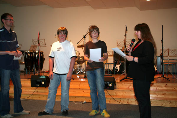 Der FOR-Sonderpreis, für den es auch einen Scheck gab, wurde von Frau Uhlig und Herrn Rasche an Benedict D. und Dustin K. übergeben. Beide haben auf sehr unterschiedliche Weise sehr viel für unsere Schule und das Schulleben gemacht.