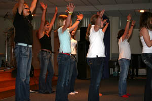 Mit Beginn des zweiten Blockes spielte unsere Instrumentalgruppe unter der Leitung von Herrn Birkenhake. Herr Birkenhake ging wie immer voll mit und heizte die Stimmung in der Aula so richtig ein.