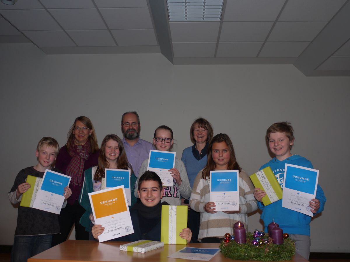 Jonas Schlichter (6a), Katrin Kysselli – Ernst, Elisa Brüning (6c), Andreas Heimann, Leon Imran (6b), Chantal Kondrat (6b), Diana Wortmann, Noah Aust (6a) und Xenia Kramme (6a)