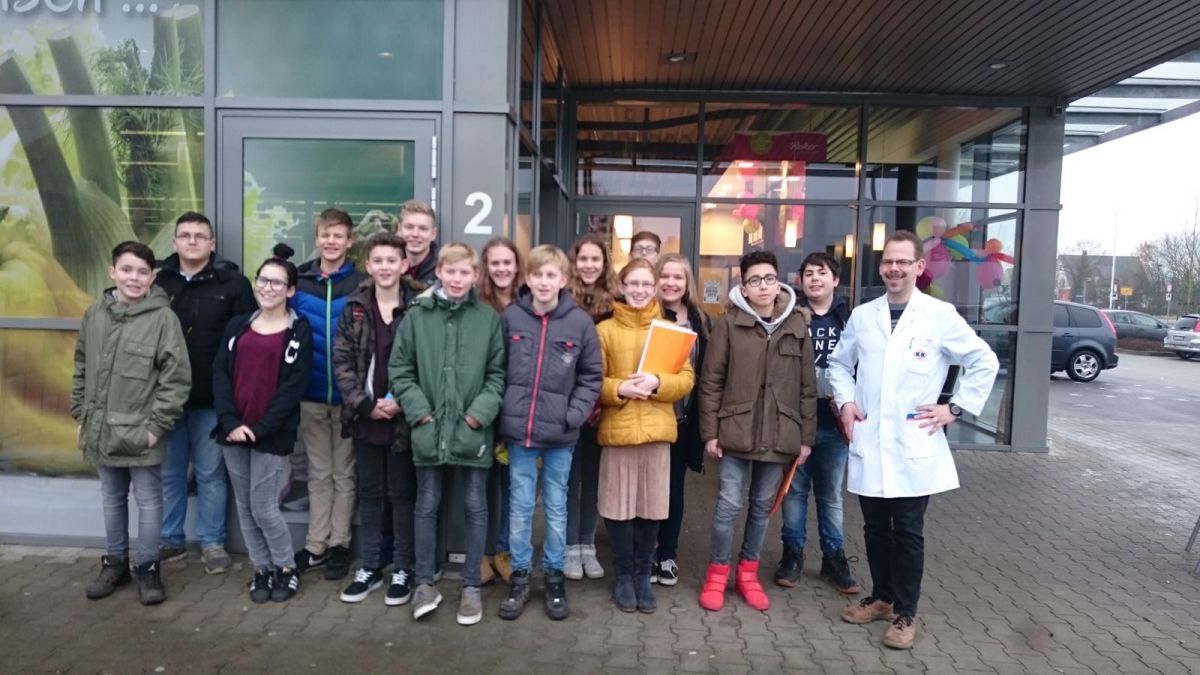 Am vergangenen Freitag besuchte der 7er Sozialwissenschaftskurs mit seiner Lehrerin Julia Weyrowitz den nahe gelegenen K+K Markt. Der Marktleiter Herr Bühlmeier hatte freundlicherweise die Erlaubnis gegeben, in seiner Filiale eine Supermarktbegehung innerhalb des Themas „Verbraucherbildung“ durchzuführen. In Kleingruppen erforschten die Schülerinnen und Schüler die Gänge und Regale des Marktes und bearbeiteten dabei schriftlich ihre vorgegebenen Aufträge. So mussten beispielsweise auf einem Arbeitsblatt die einzelnen Höhenabstufungen der Regale mit Fachbegriffen wie „Bückzone“ beschriftet oder aber Sonderangebote in Großpackungen genauer unter die Lupe genommen werden. Auch durften die Schülerin-nen und Schüler verschiedene Waren fotografieren, um unterschiedliche Verpackungsarten darzustellen. Am Ende wurde noch der normale Weg der Kunden durch den Markt nachge-zeichnet, wobei sich die vorab aufgestellte Vermutung, dass man immer gegen den Uhrzeigersinn durch einen Markt gehe, bestätigte. Abschließend fanden sich noch alle Schülerinnen und Schüler mit dem Marktleiter zu einem Abschlussfoto vor dem Markt ein, wo sich der Kurs noch einmal herzlich bei Herrn Bühlmeier bedankte.