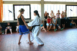 Am 23.06.05 besuchte Shotokan-Europameisterin Silvia Hagen die Osterrath-Realschule in Rheda-Wiedenbrück, um bei den 20 Teilnehmerinnen des Karate-Wahlpflichtkurses unter der Leitung von Lehrerin Tina Gandelheid die erste Gürtelprüfung abzunehmen.