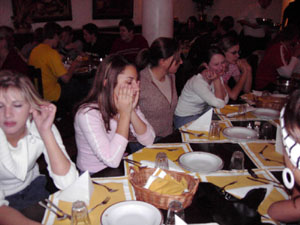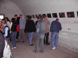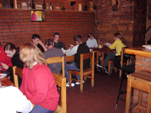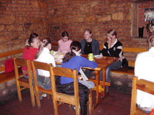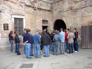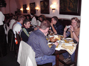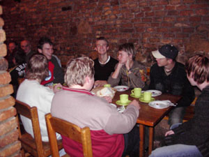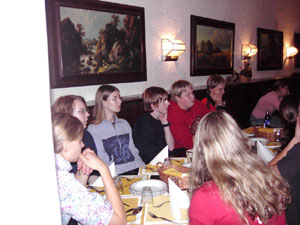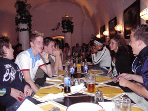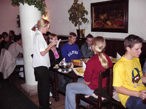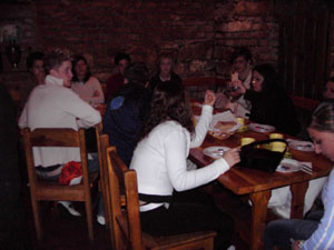Als wir um sieben Uhr morgens alles im Bus verstaut hatten, fuhren wir los. Nach elf Stunden Busfahrt erreichten wir unser "Hotel". Die Begeisterung hielt sich bei den meisten in Grenzen. Nachdem wir unsere Zimmer bezogen hatten, gingen wir im historischen Keller (Restaurant) essen.