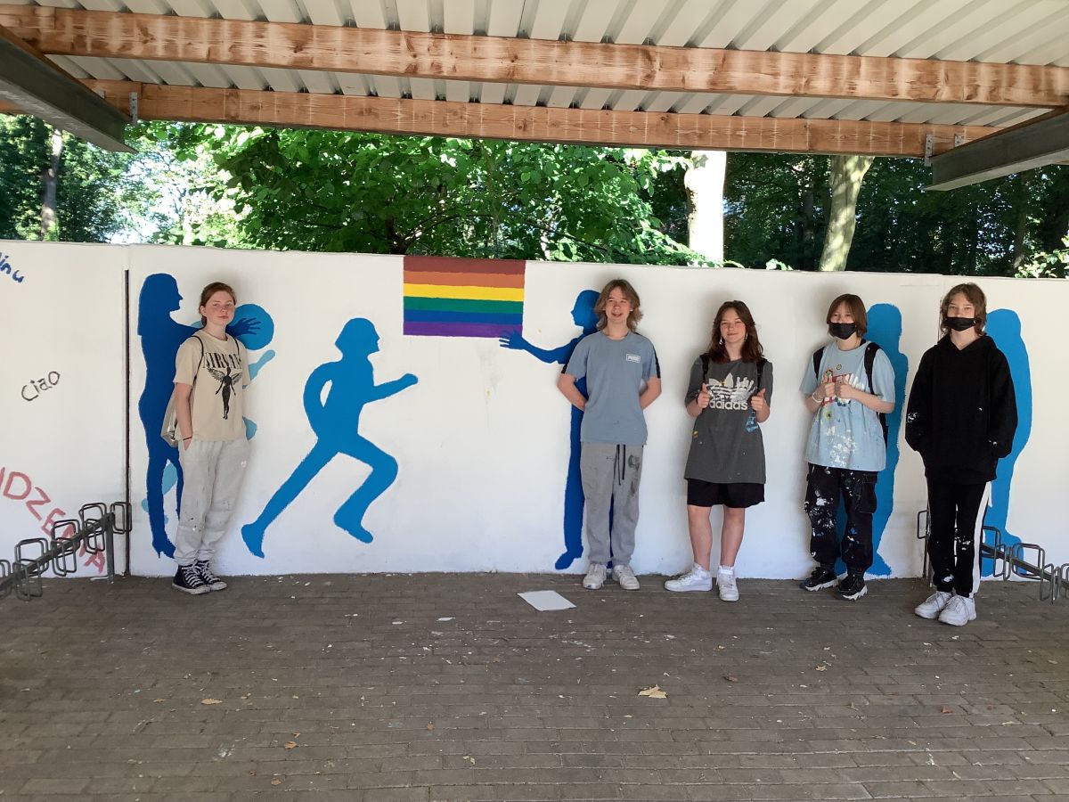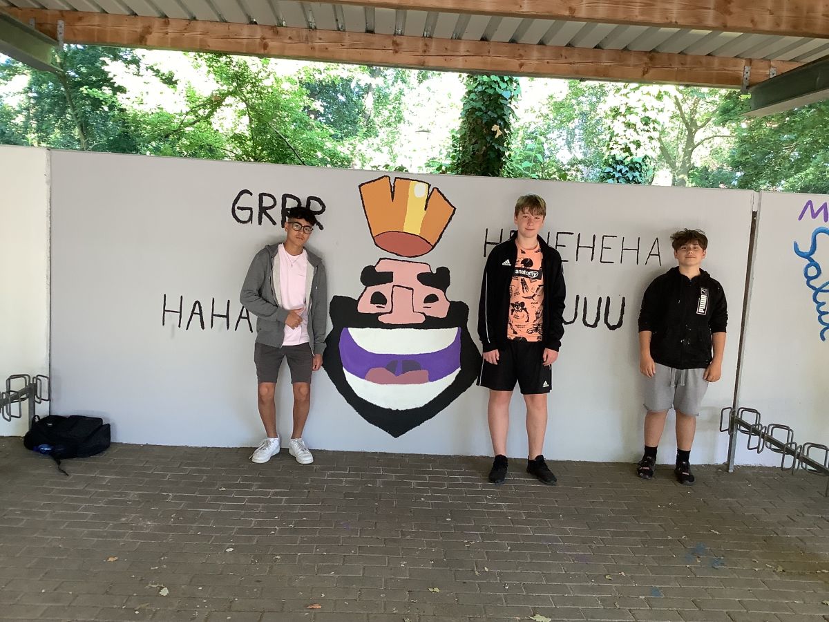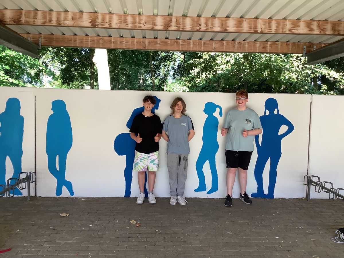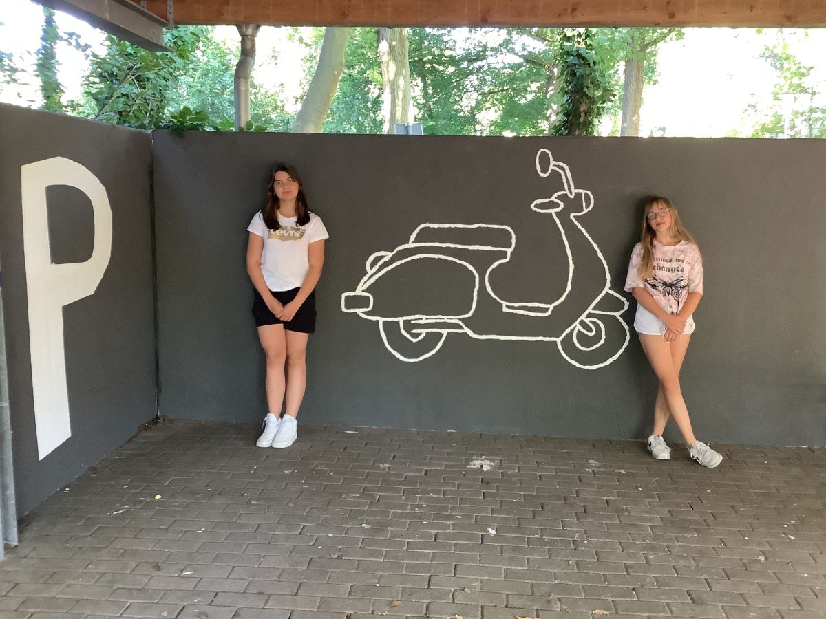Wir, die 8a, haben in der Projektwoche vor den Sommerferien zum Thema „Unsere Schule soll schöner werden“ die Wände der Fahrradständer neugestaltet.