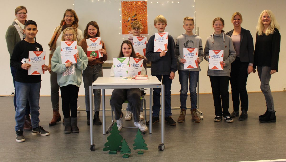 Die Klassensieger/-innen und die Schulsiegerin des Vorlesewettbewerbs 2022