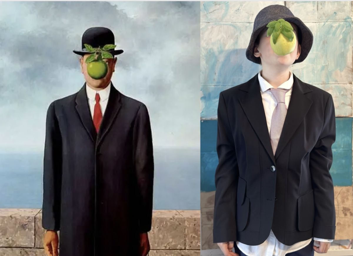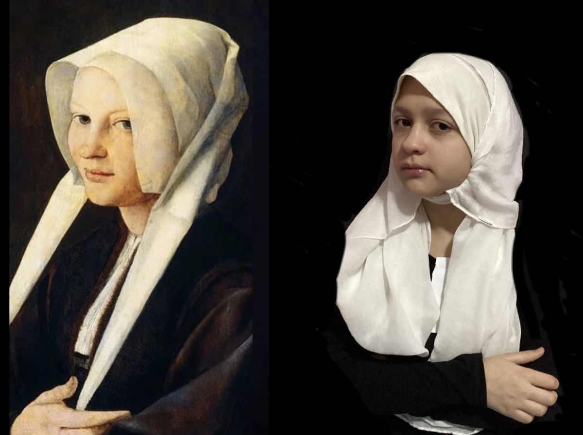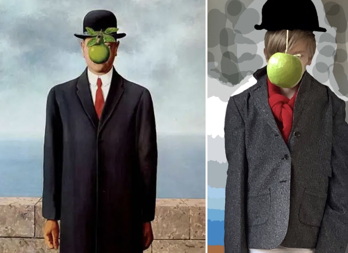 Das Getty Museum Los Angeles rief während des Lockdowns 2020 dazu auf, bekannte Kunstwerke mithilfe von Alltagsgegenständen nachzustellen und hochzuladen. Die Schülerinnen und Schüler verwendeten Mitgebrachtes und überarbeiteten ihre Fotos digital. Dabei übten sie sich in der bestmöglichen Imitation von Mimik und Gestik.