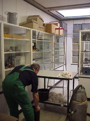 Die in Mitleidenschaft gezogenen Räume werden zur Zeit von einer Spezialfirma fachgerecht gereinigt und saniert.